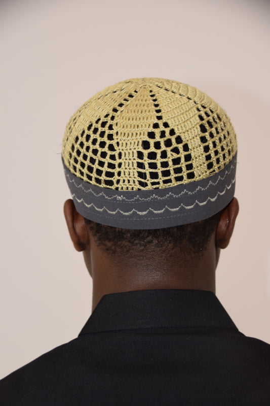 Kufi Egipcio Bordado Clásico – Beige y Gris