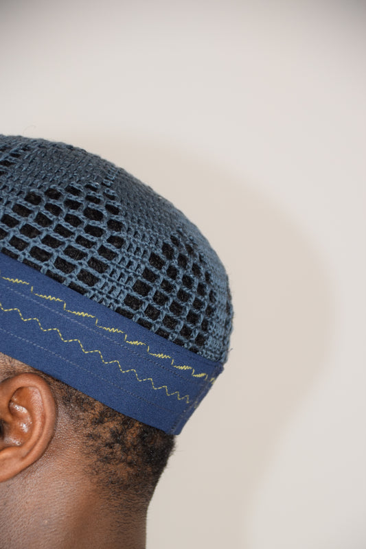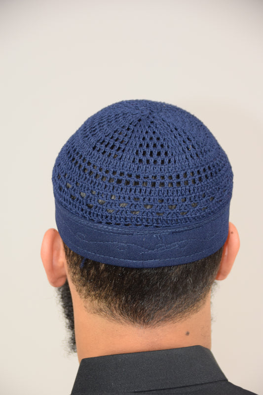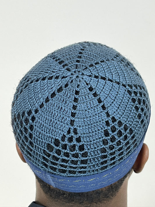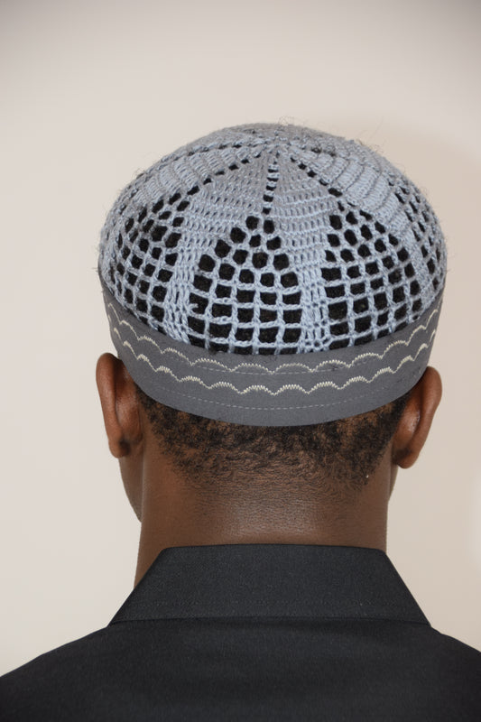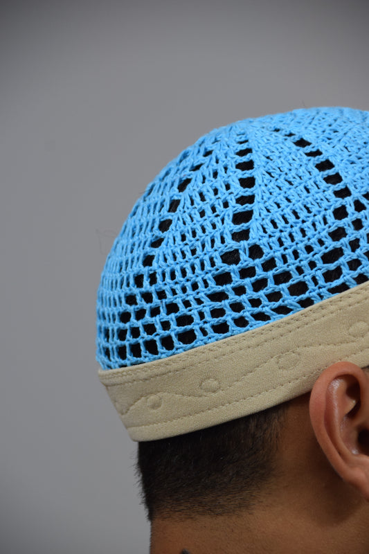 Kufi Egipcio Bordado Clásico – Azul claro y Gris